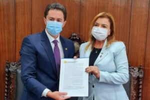 A presidente do Conselho Federal de Enfermagem (Cofen), Betânia Santos, entregou hoje (7/10) ao presidente em exercício do Senado, Venziano Rego (MDB-PB), a Carta da Florianópolis. A carta, aprovada no 23º Congresso Brasileiro dos Conselhos de Enfermagem (23º CBCENF), destaca o apoio da profissão à emenda ao PL do Piso Salarial, apresentada pela senadora Eliziane Gama (Cidadania-MA).